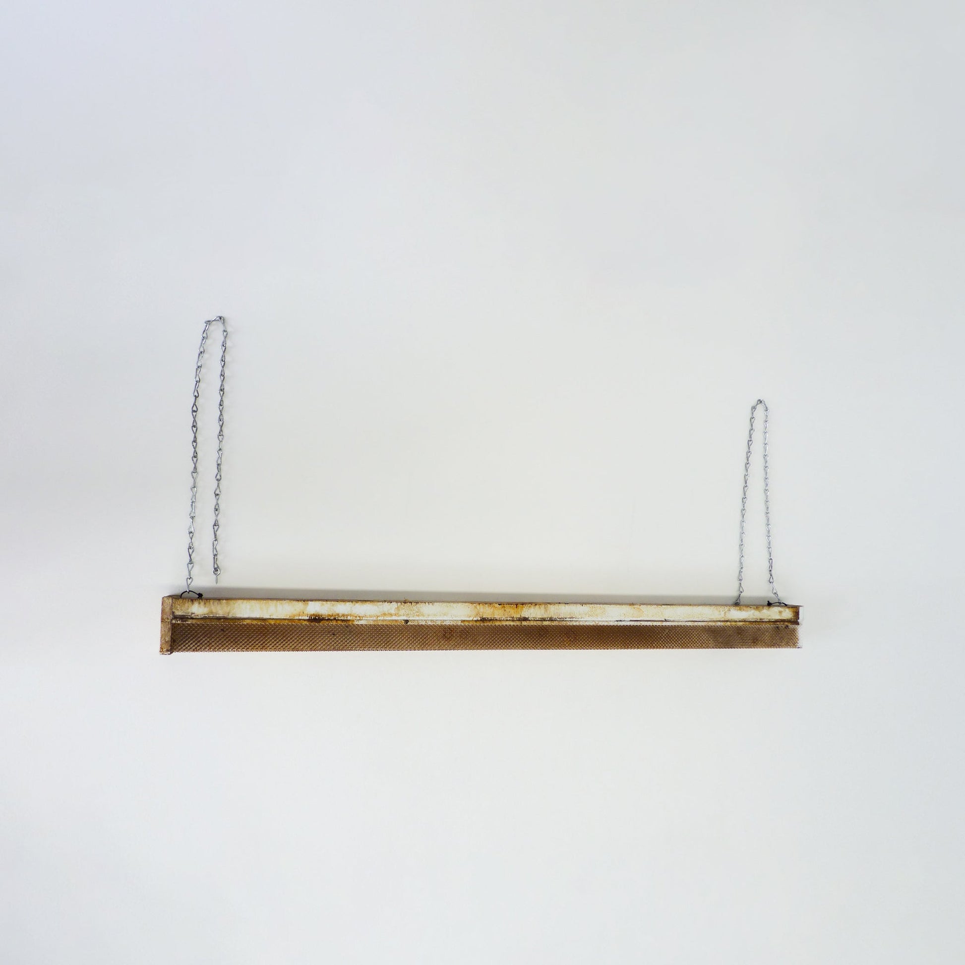 Description: Aged 4-foot single fluorescent factory batten light fitting with diffuser