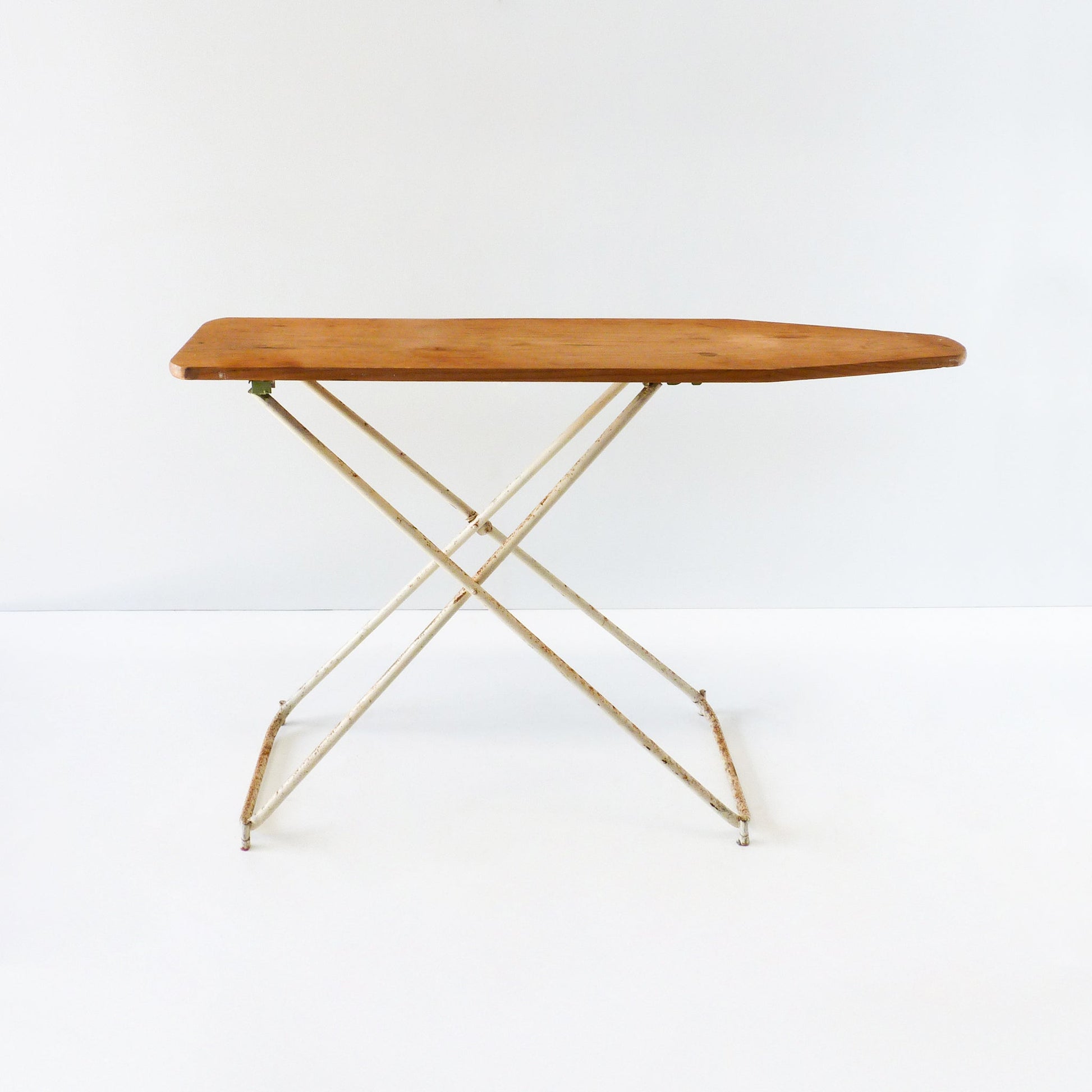Description: Wooden top with adjustable metal legs. Circa 1940s