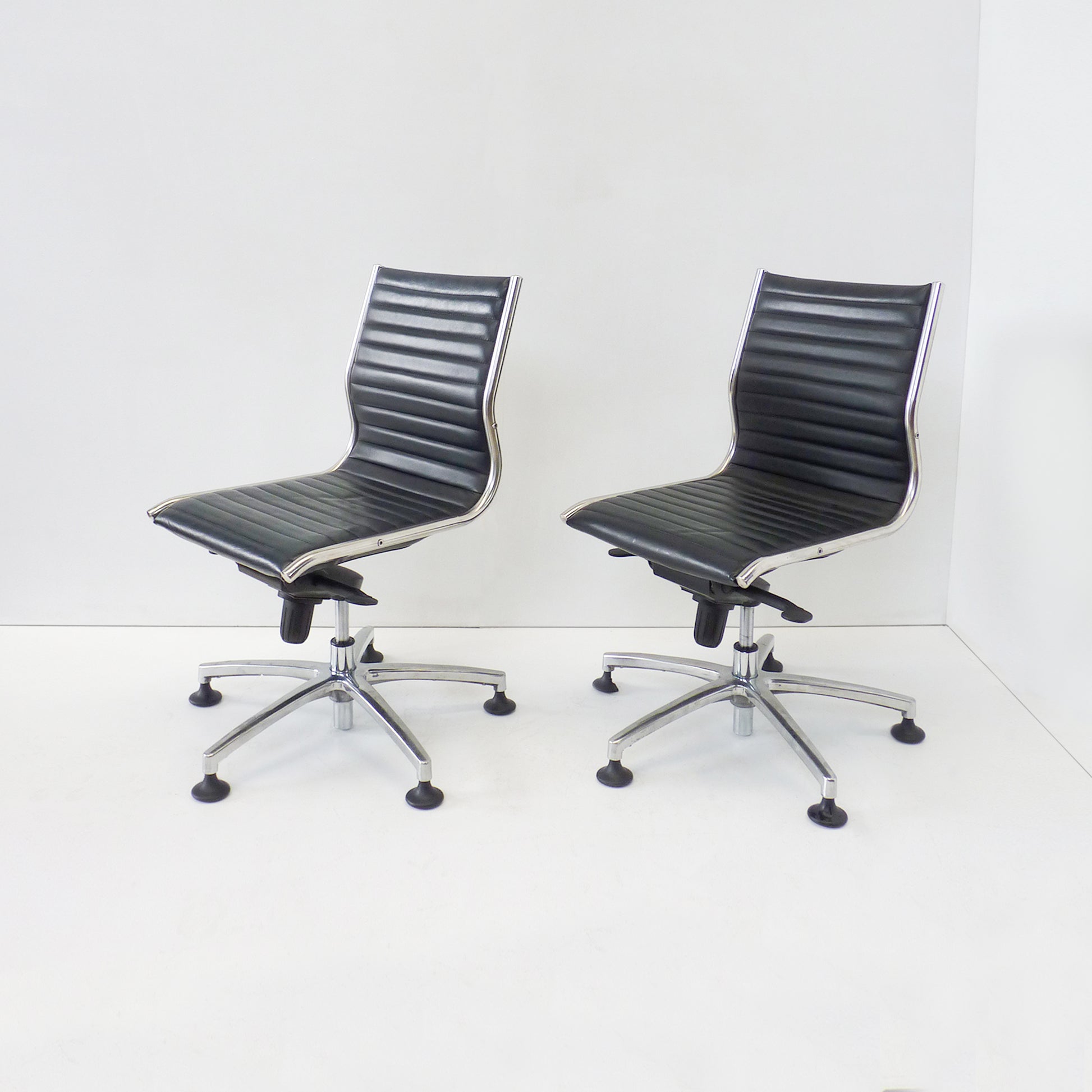Description: Chrome and black leather boardroom office chair without wheels & arm rests