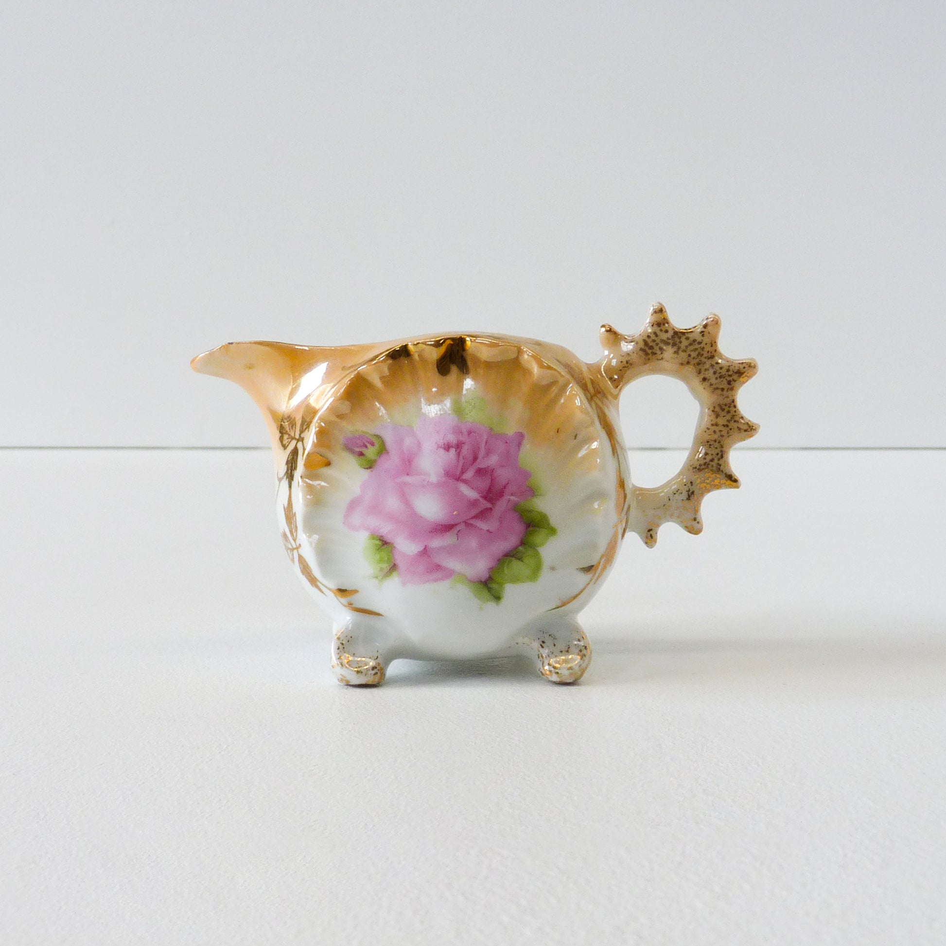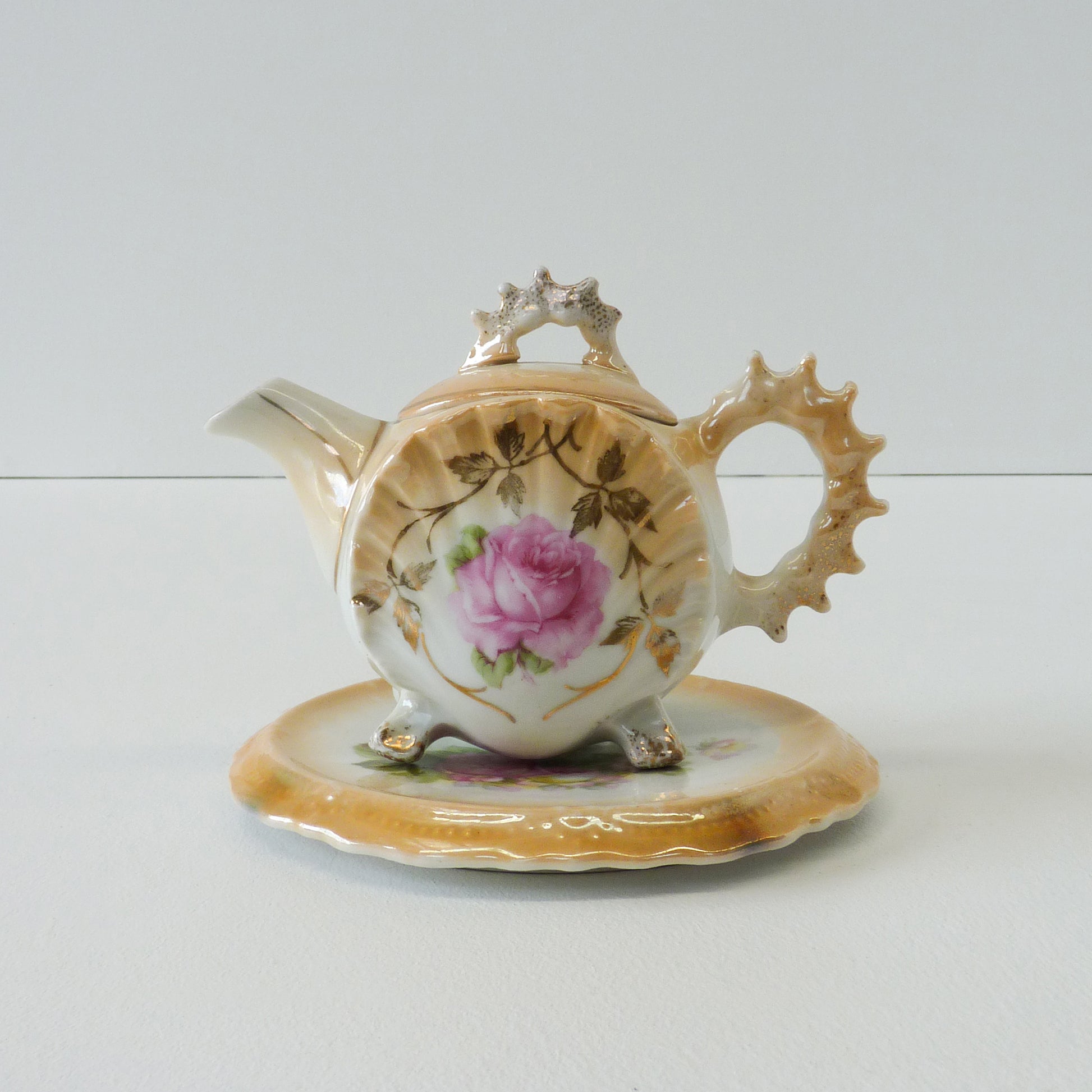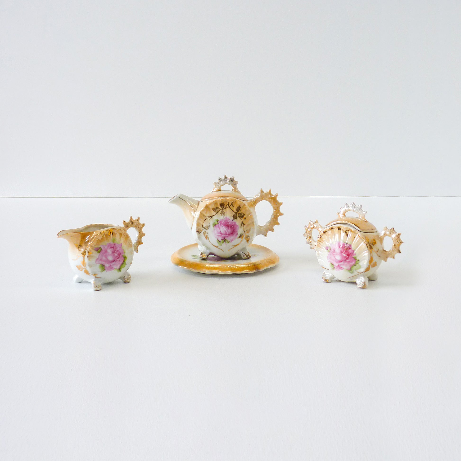 Description: Vintage victorian floral tea set with spiked edge detail