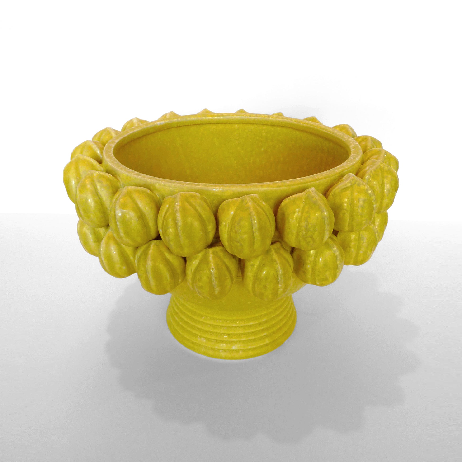 Description: Large yellow ceramic bowl / vase with decorative lemon detail