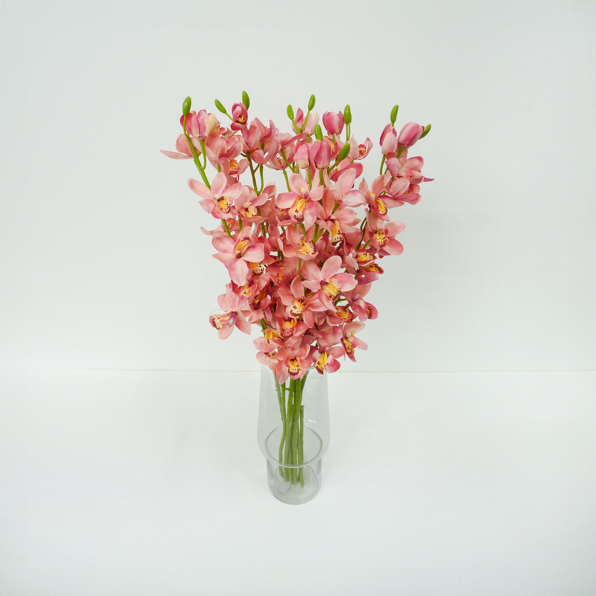 Description: Artificial long stemmed light pink boat orchid