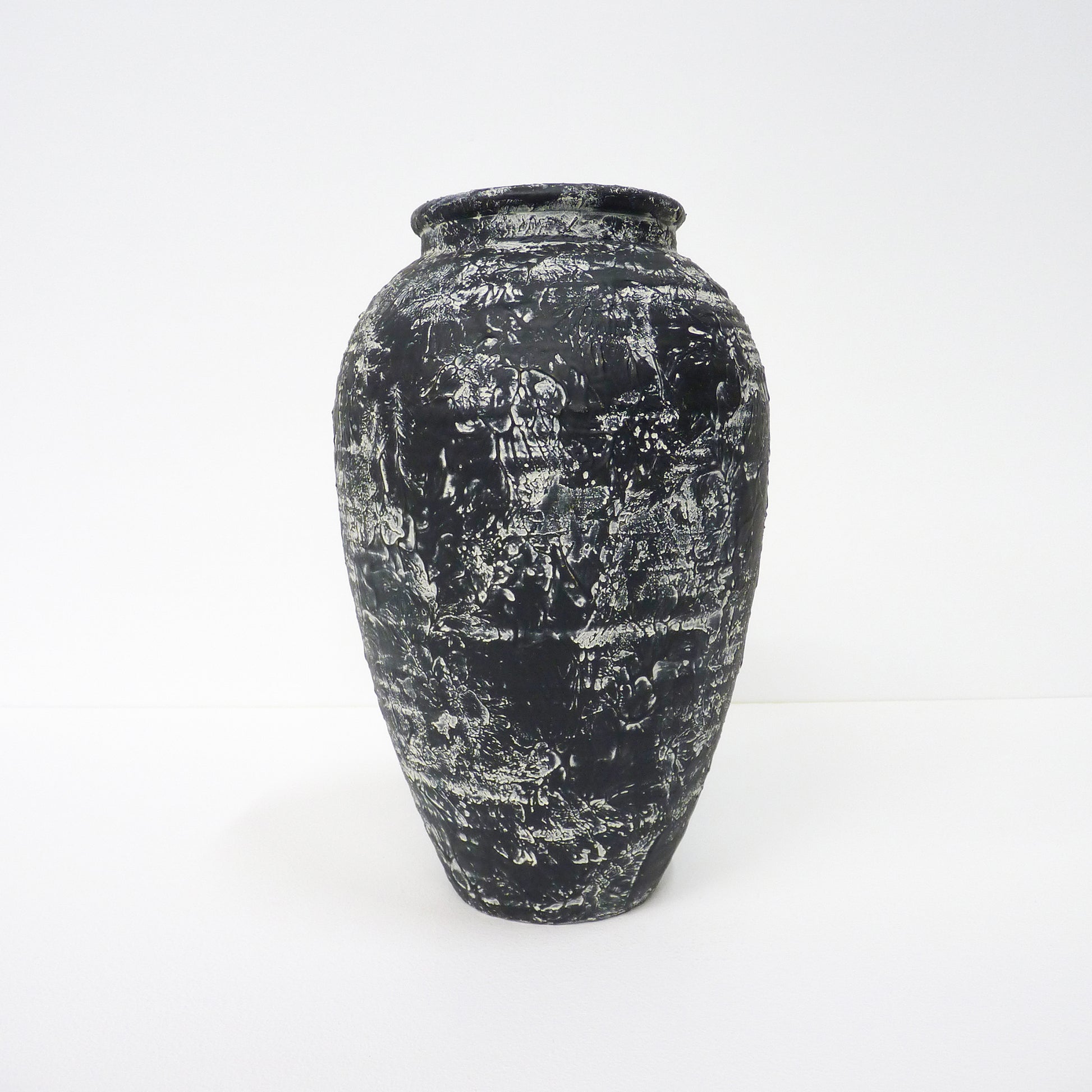 Description: Black and white textured ceramic vase