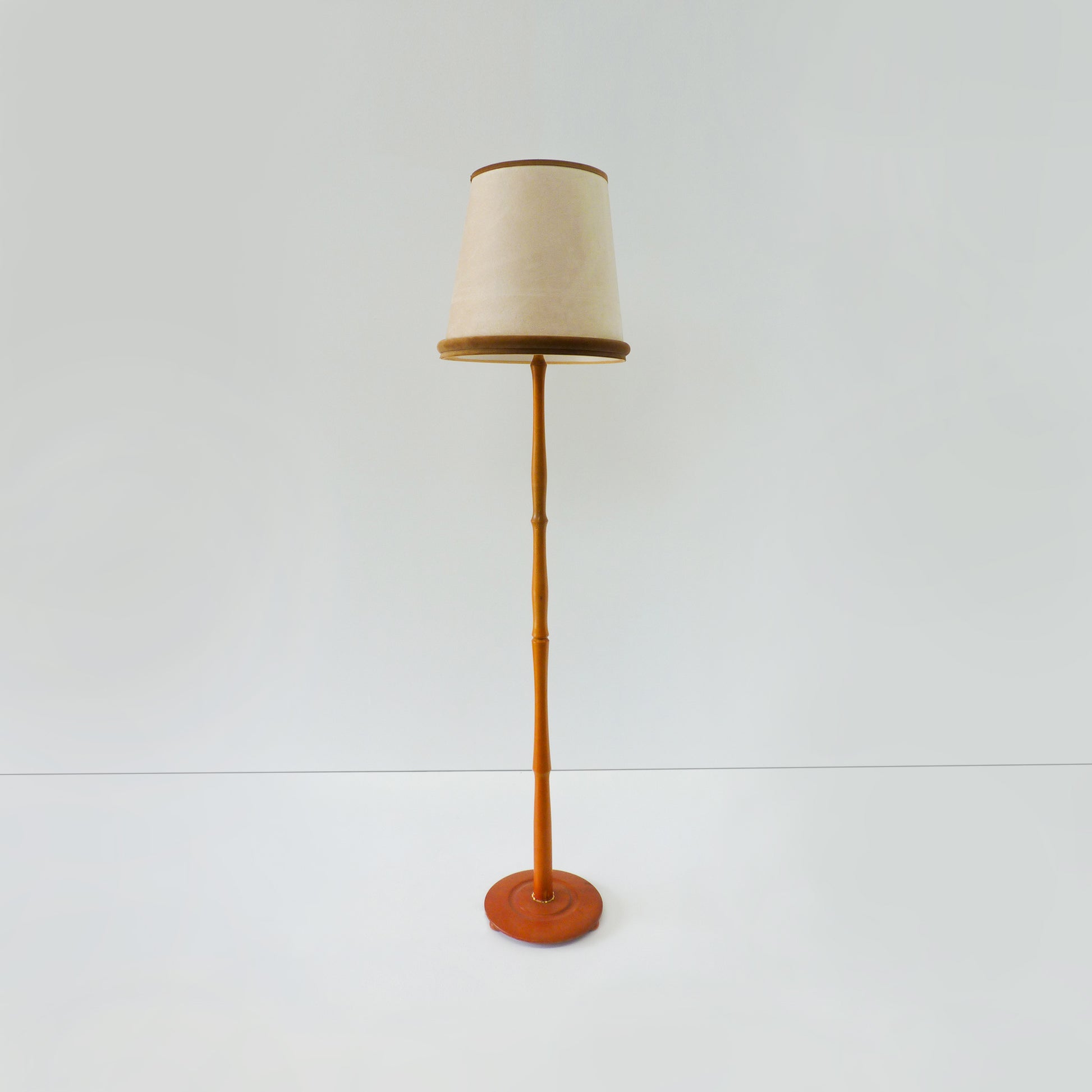 Description: Vintage brown timber standing lamp