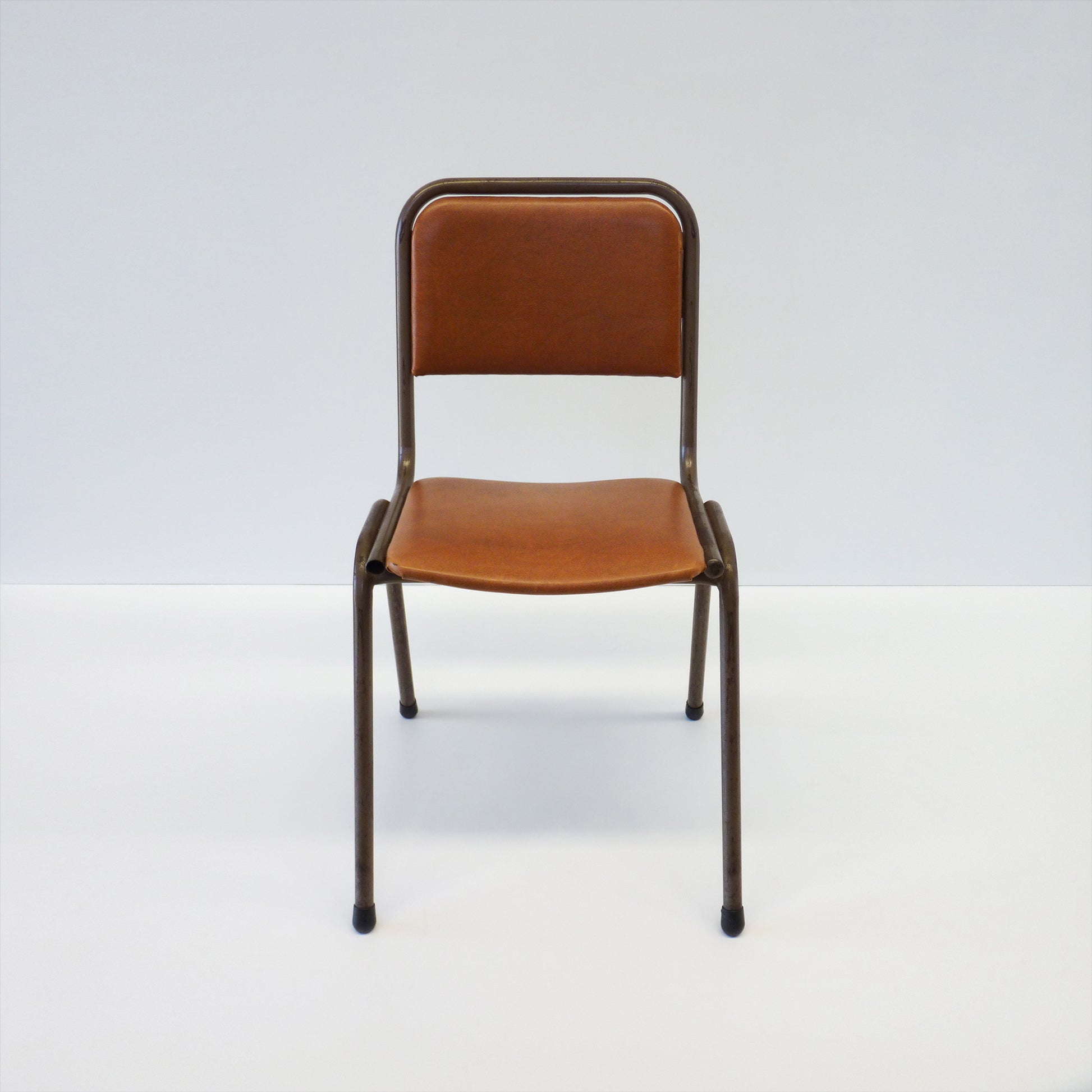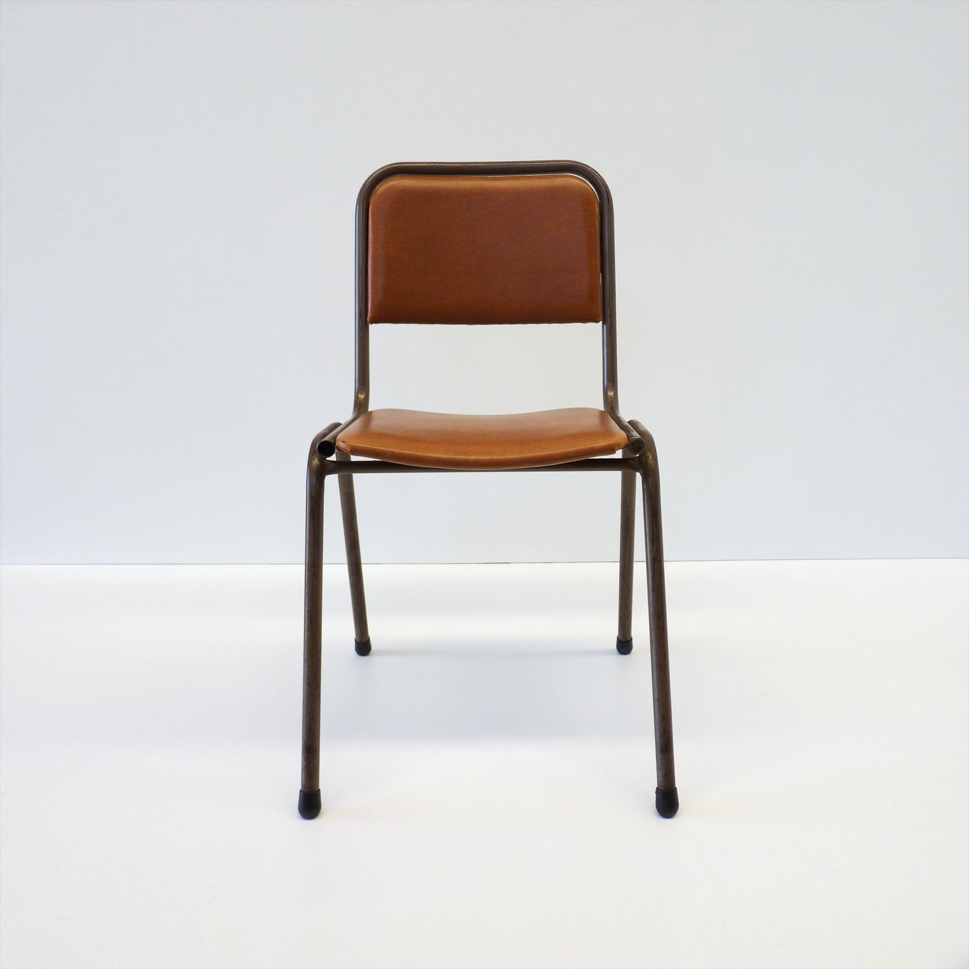 Description: Stackable vintage vinyl hall chairs circa 1940's